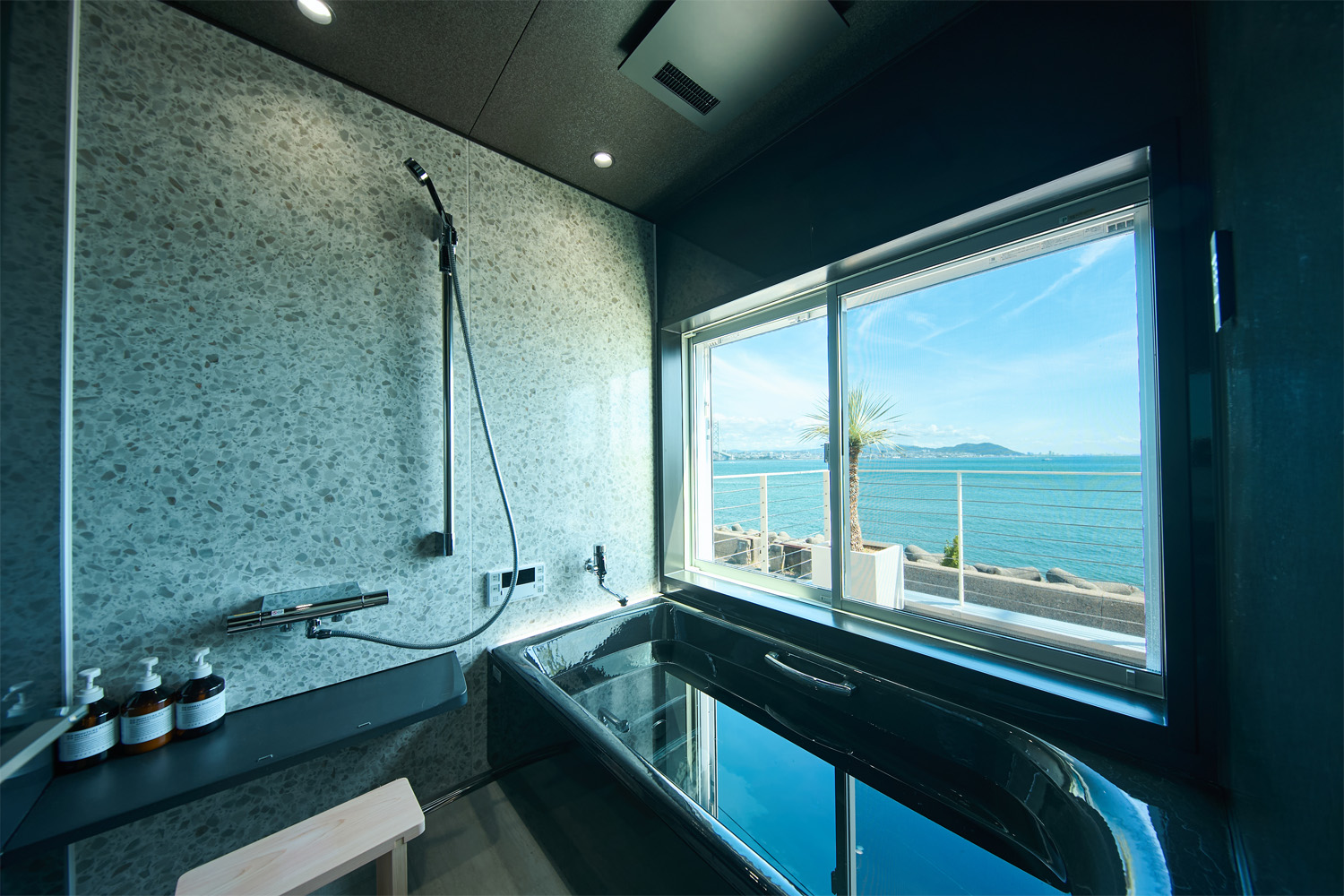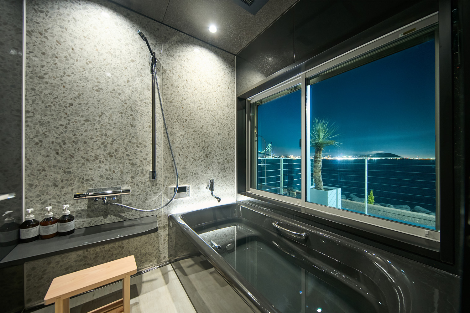 淡路島・岩屋の地下から湧き出る天然の温泉をお風呂に使用しています。