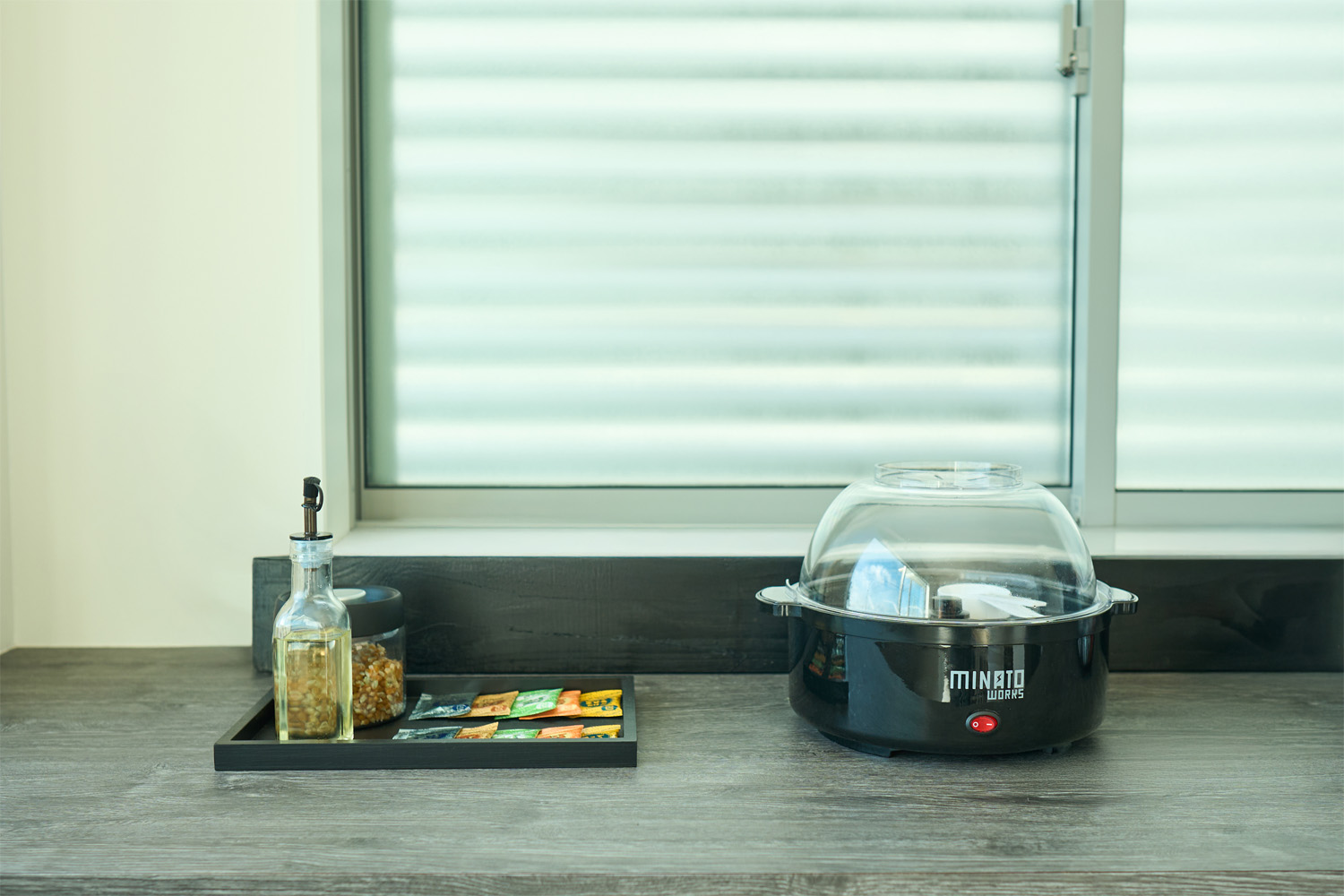 • ポップコーンメーカーを含む家電・調理器具は、季節やお客様のご要望に合わせて順次アップデートを行っております。そのため、掲載写真と異なる場合や一部機器がご利用いただけない場合がございますが、返金の対象外となりますので予めご了承ください。